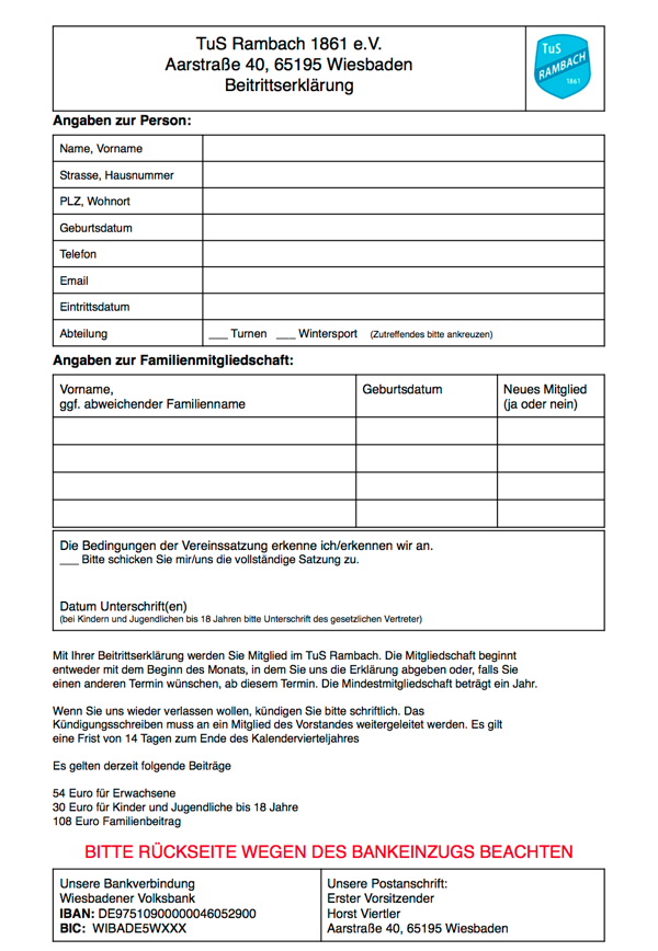 Schön, daß Sie sich für eine Mitgliedschaft im TuS Rambach interessieren.